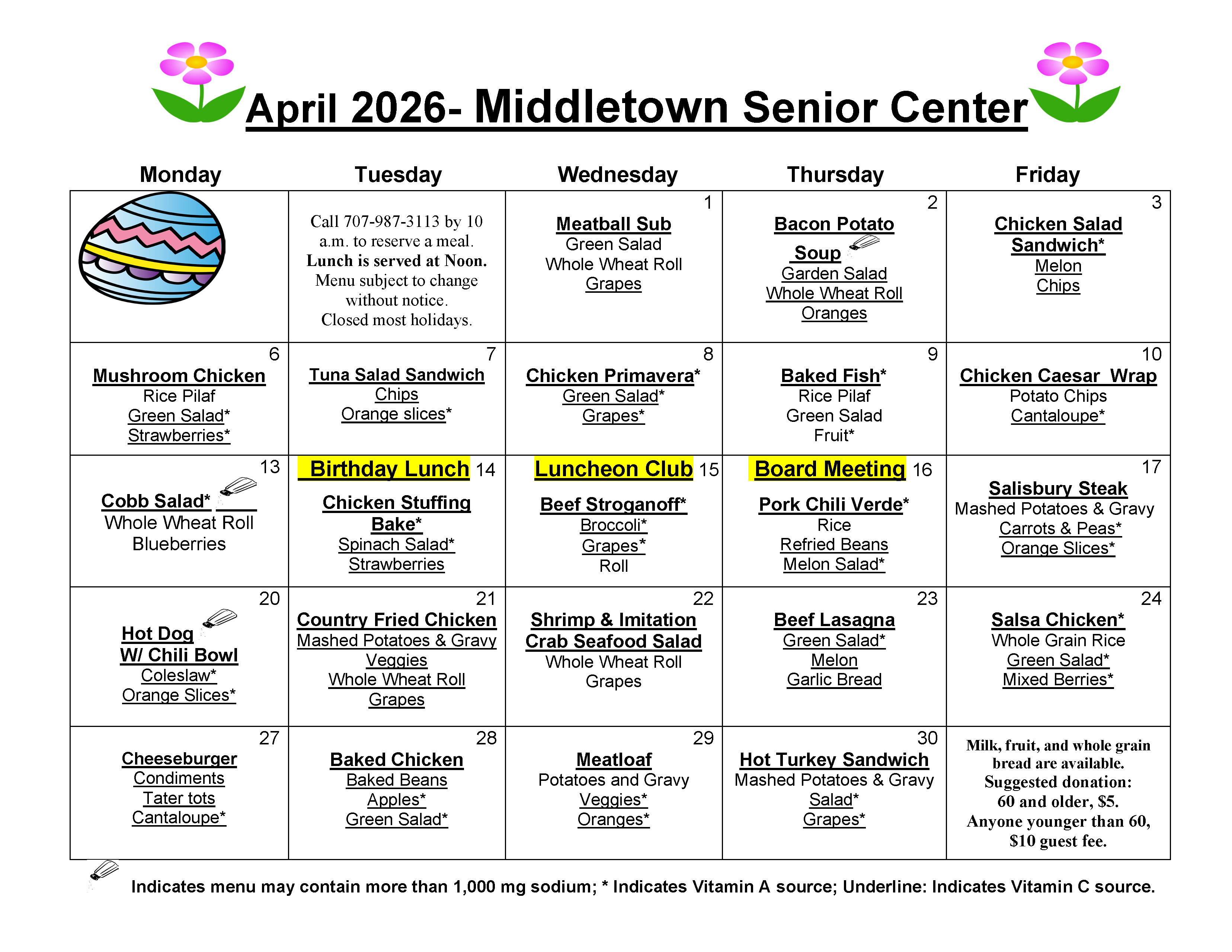 Meals subject to change without notice