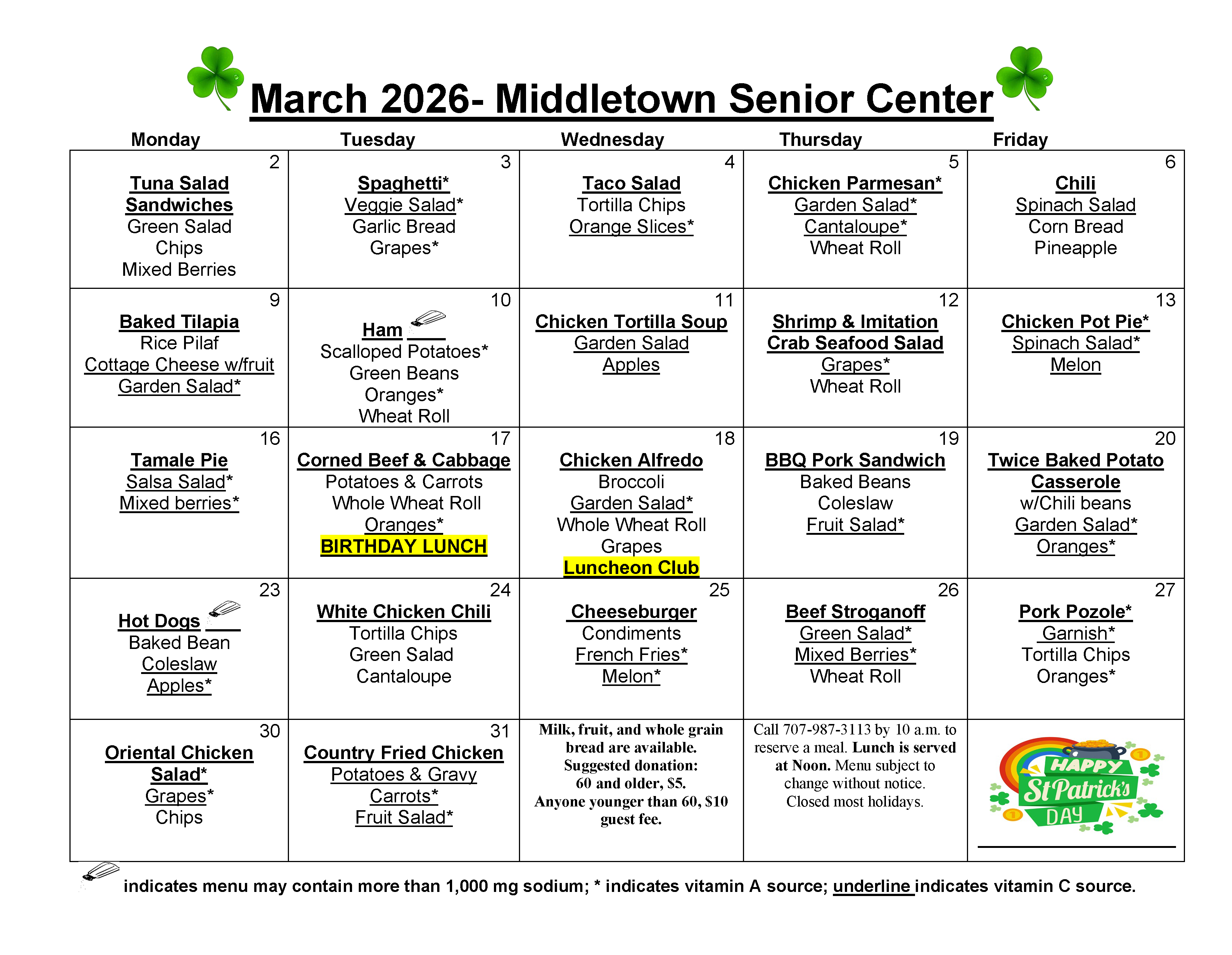 Call for reservations 1-707-987-3113